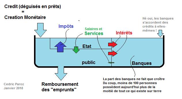 Les intérêts aussi, à un détail près, c’est qu’ils ne circulent que très peu … la majorité restant dans une partie “privée” de la baignoire … la propriété des banquiers !